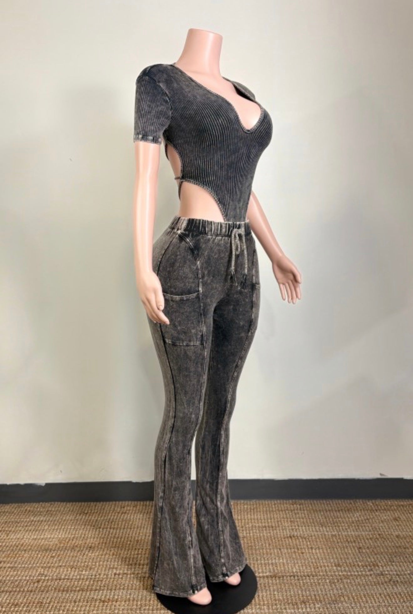 Mineral Wash Open Back Bodysuit & Flare Pant Set