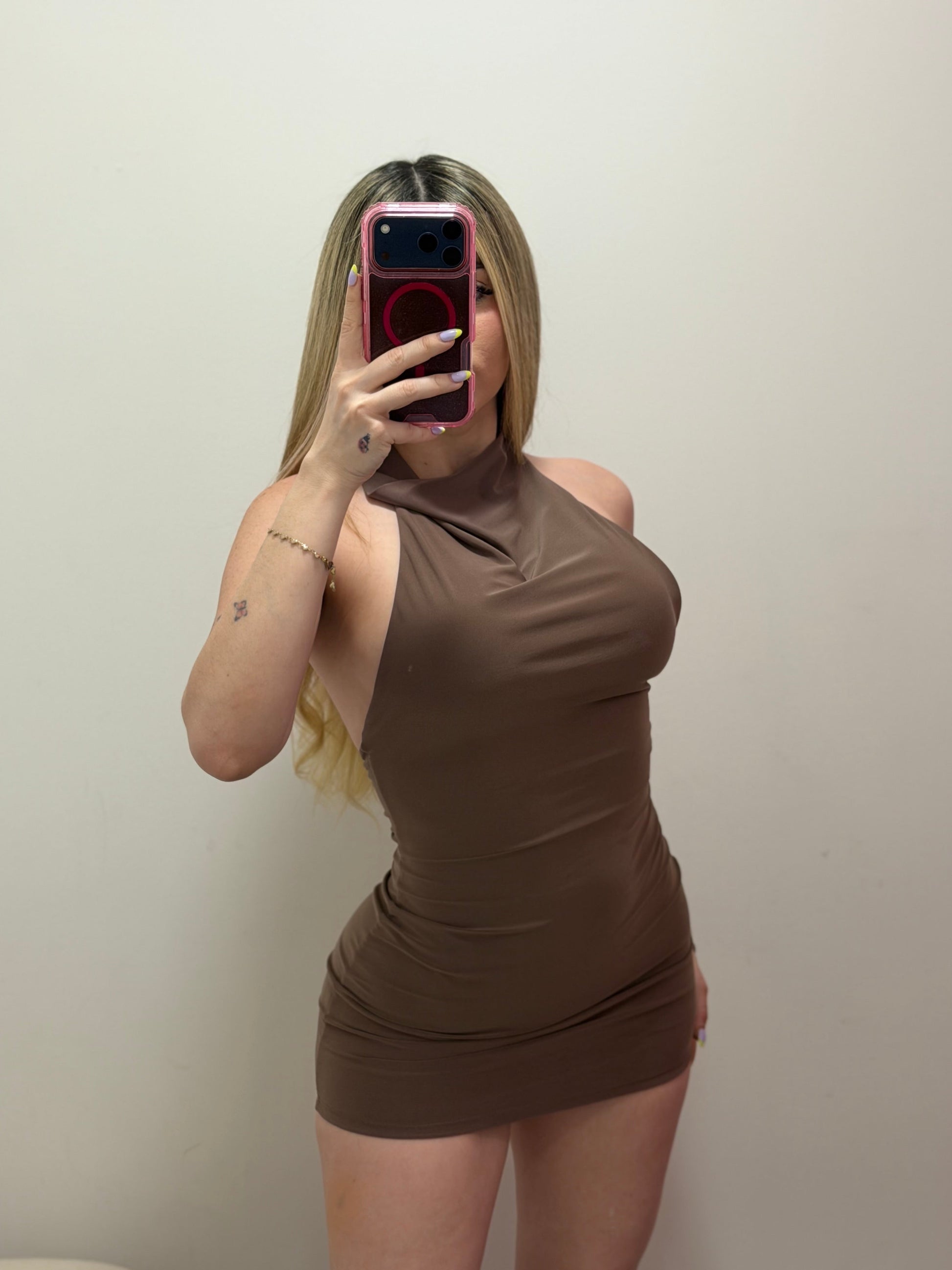 Mocha Halter Mini Dress