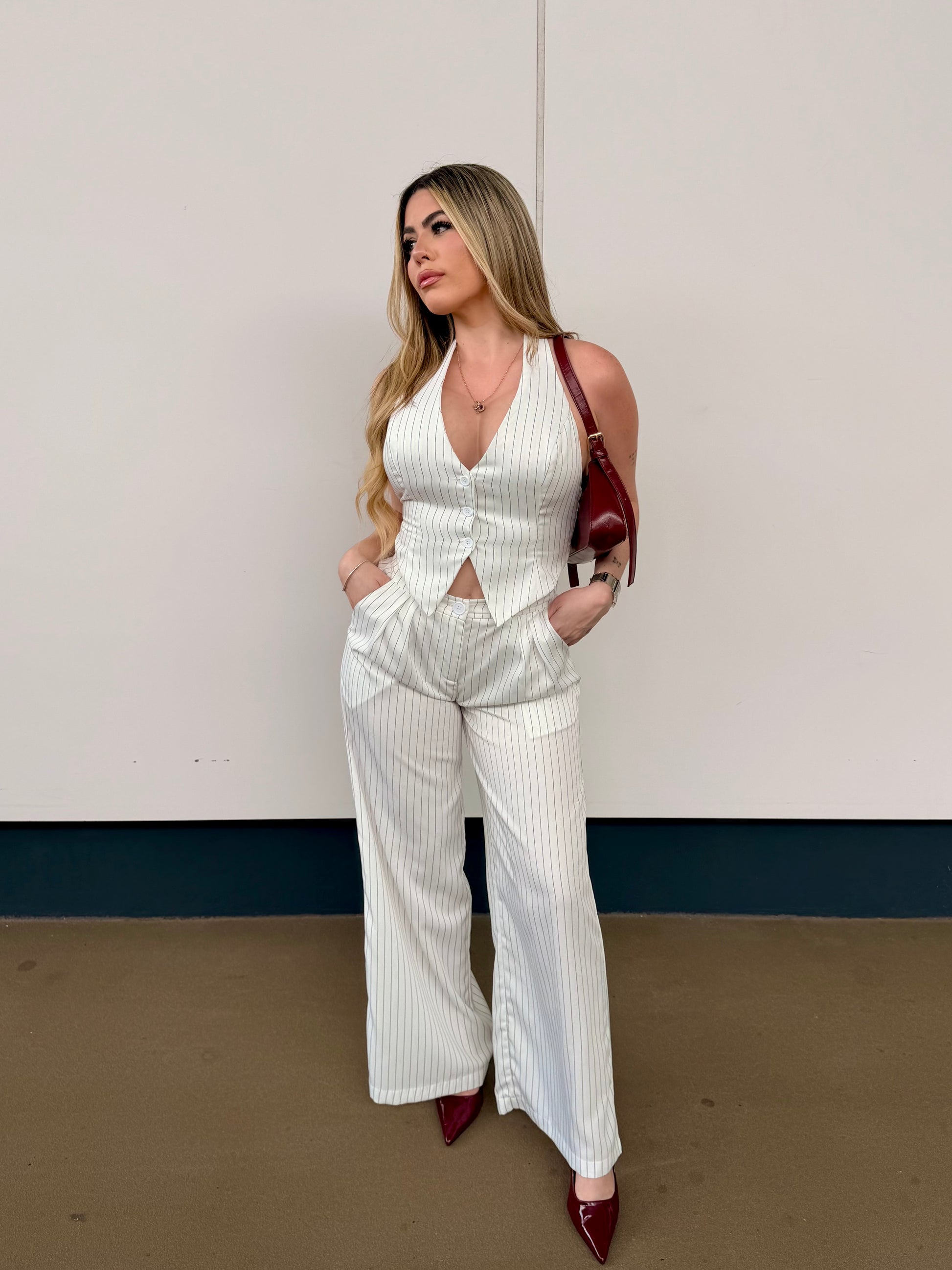 Backless Vest w/ Long Pants Stripe Set